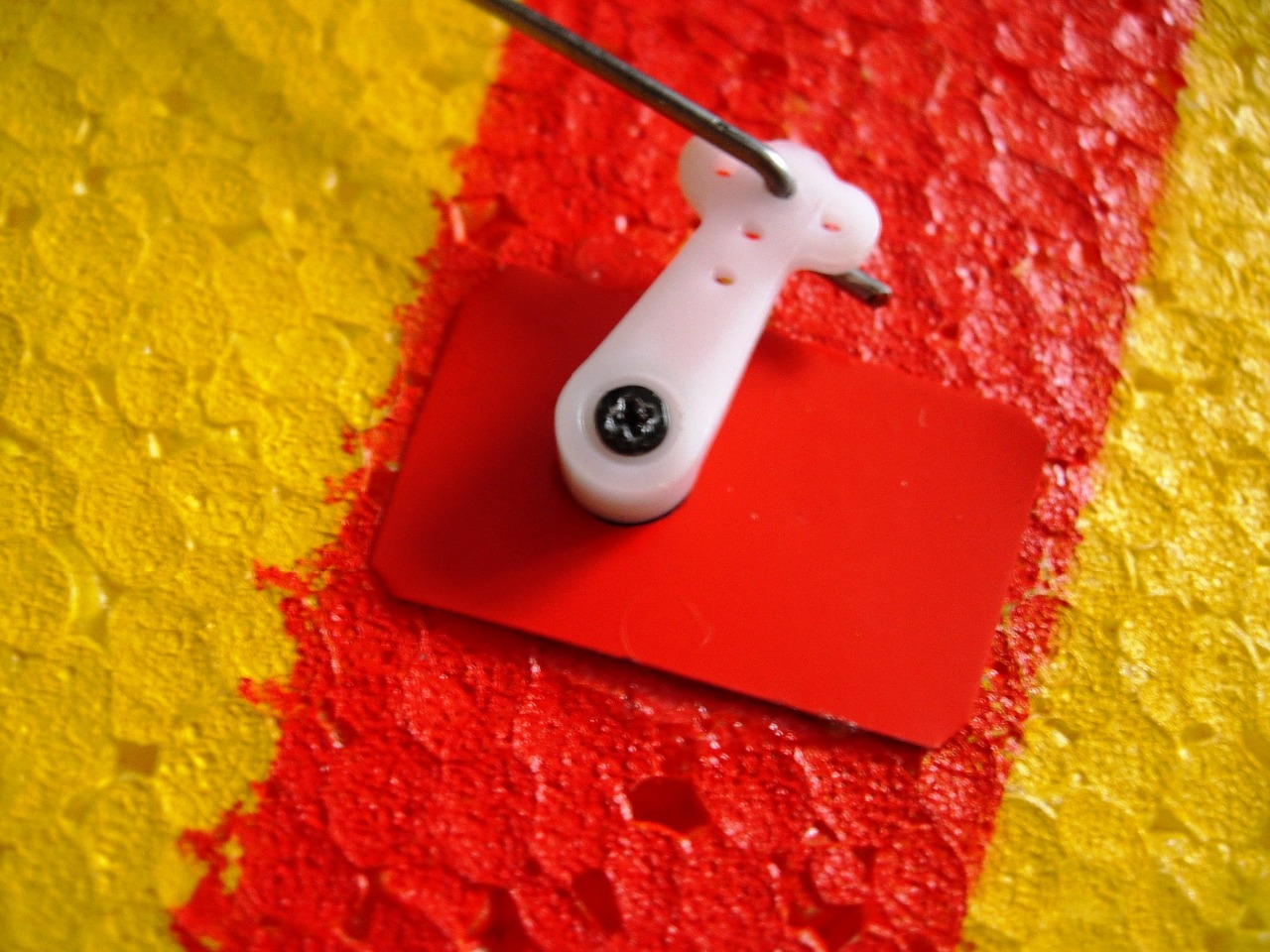 Náběžku jsem polepil skelnou páskou. I když je na internetu mnoho rad, jak zamezit odlepování pásky z EPP, nedařilo se. Po každém přistání se někde kousek odlepil. Vyzkoušeno bylo skoro všechno. Textilní páska, hliníková, delší dobu jsem létal i bez pásky. Nakonec zvítězila vyzkoušená "olizovací" hnědá páska, namočená do lepícího laku. Drží to perfektně.